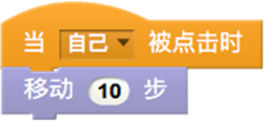 就实现这样的行为控制:用户点击当前“角色”后,角色向右移动10步。